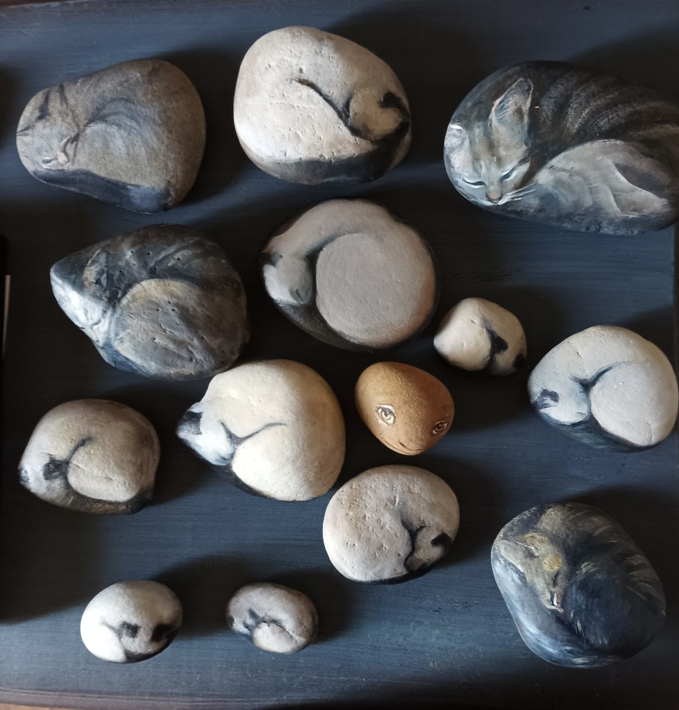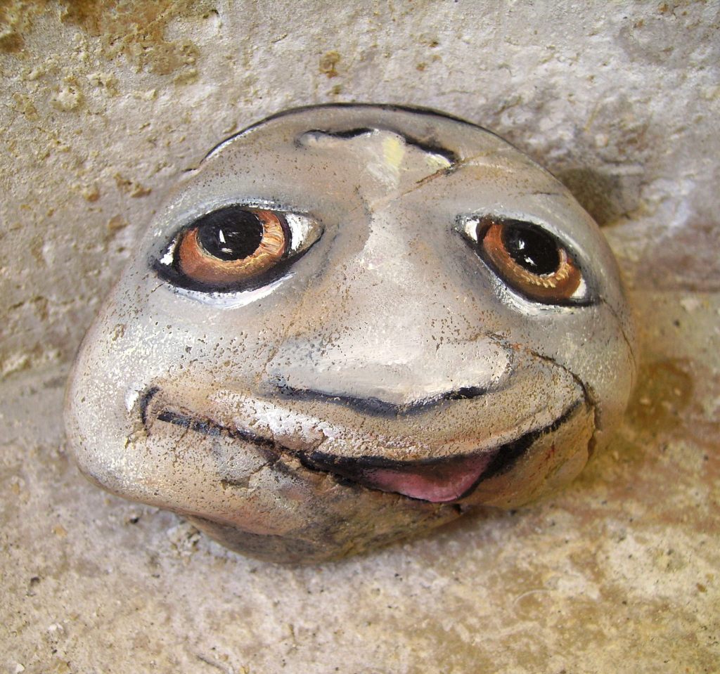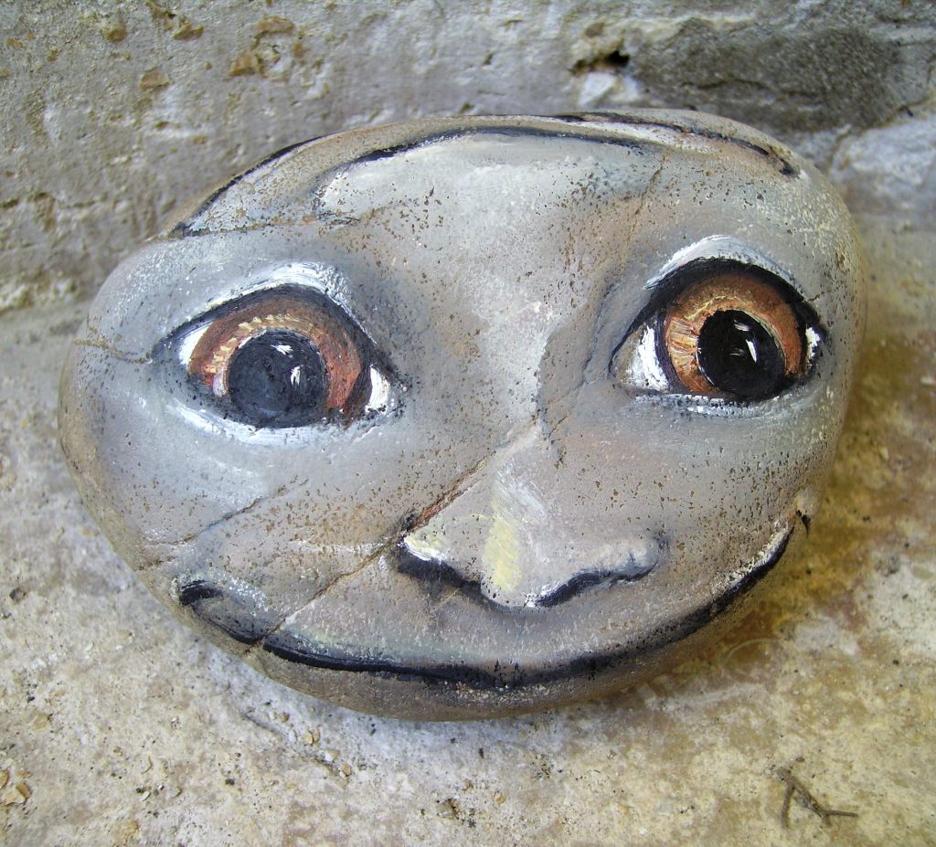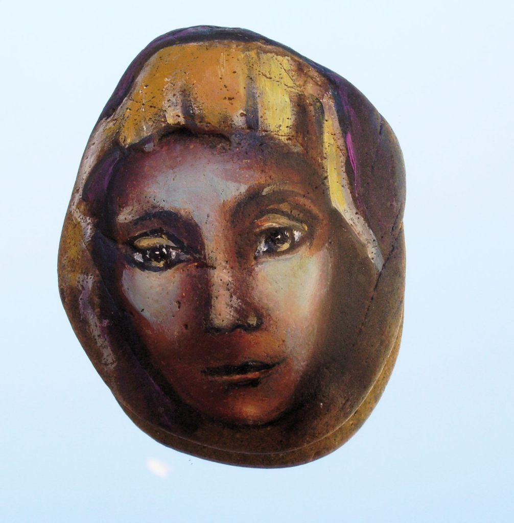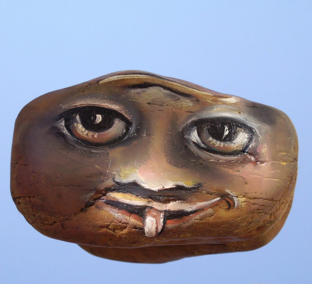 Peinture a l’huile sur pierre » Pierre qui pense » -série de pierres réversibles /a tourner …
